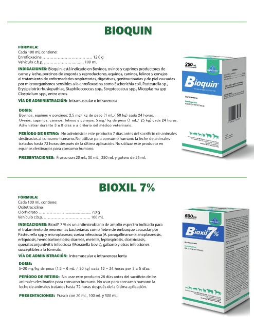 INDICACIONES: Bioquin, está indicado en Bovinos, ovinos y caprinos productores de