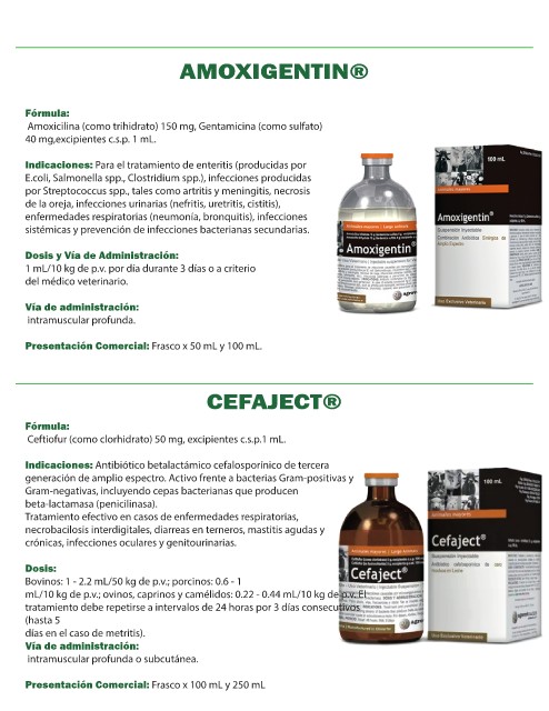 Bovinos: 1 - 2.2 mL/50 kg de p.v.; porcinos: 0.6 - 1