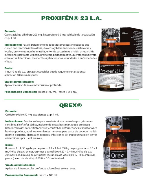 Oxitetraciclina dihidrato 200 mg, ketoprofeno 30 mg, vehículo de larga acción