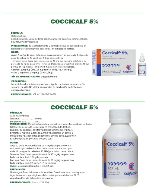 INDICACIONES: Para el tratamiento y control efectivo de la coccidiosis en todas