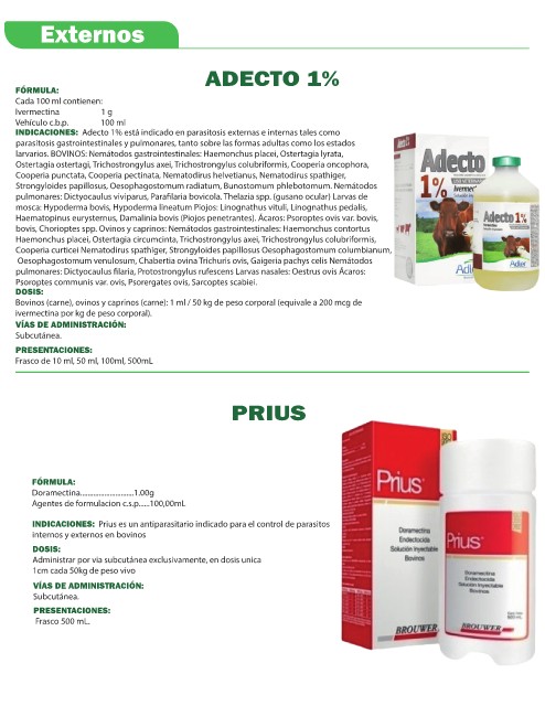 INDICACIONES: Adecto 1% está indicado en parasitosis externas e internas tales como