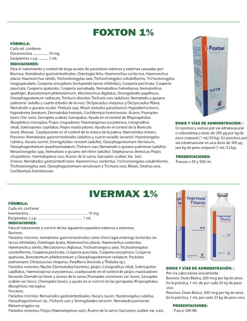 chupadores: Haematopinus suis; Ácaros de la sarna: Sarcoptes scabiei, Var. Suis. PRESENTACIONES: