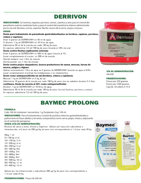 por la vía oral. Bovinos, ovinos, caprinos: Nuche, ácaros de la sarna, piojos y moscas.