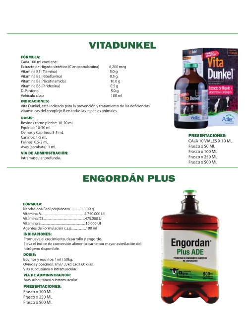 Ovinos y porcinos: 1ml / 33kg cada 60 días.
