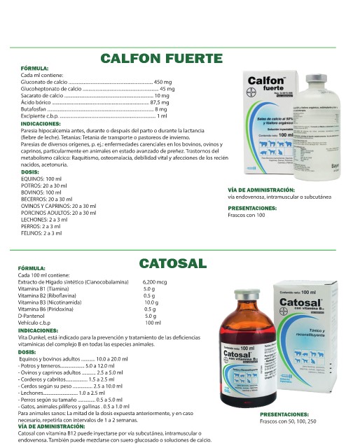 Para animales sanos: La mitad de la dosis expuesta anteriormente, y en caso PRESENTACIONES: