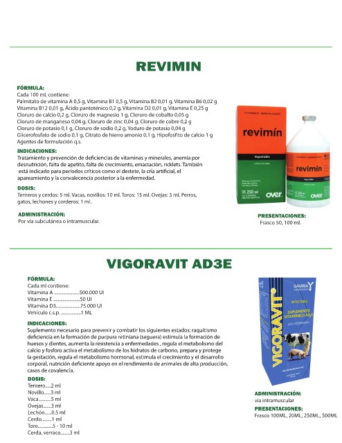 Vitamina B12 0,01 g, Ácido pantoténico 0,2 g, Vitamina D2 0,01 g, Vitamina E 0,25 g