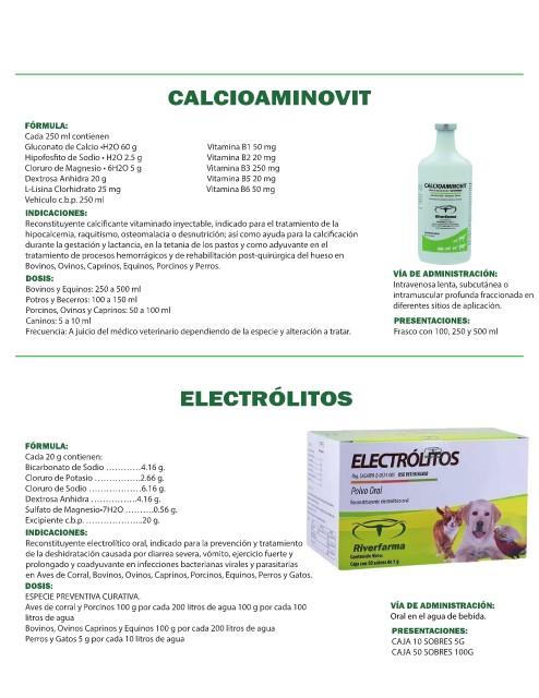 Bovinos y Equinos: 250 a 500 ml Intravenosa lenta, subcutánea o